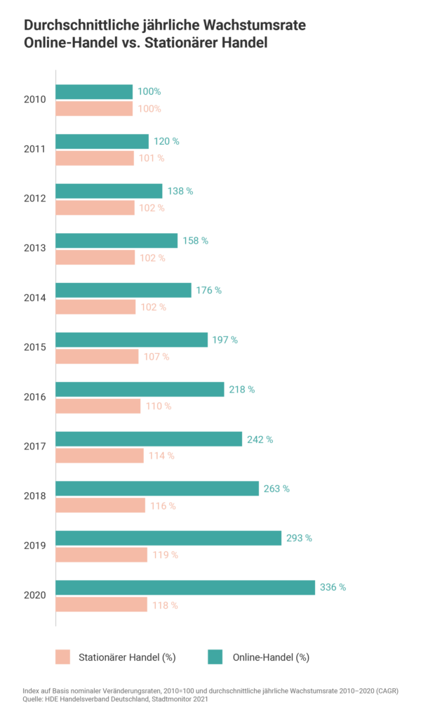 Spätestens in Zeiten des Lockdowns sind die meisten deutschen Konsumenten gezwungenermaßen auf das Onlineshopping umgestiegen, die Geschäfte waren geschlossen, das Leben in den Innenstädten kam währenddessen zum Erliegen.